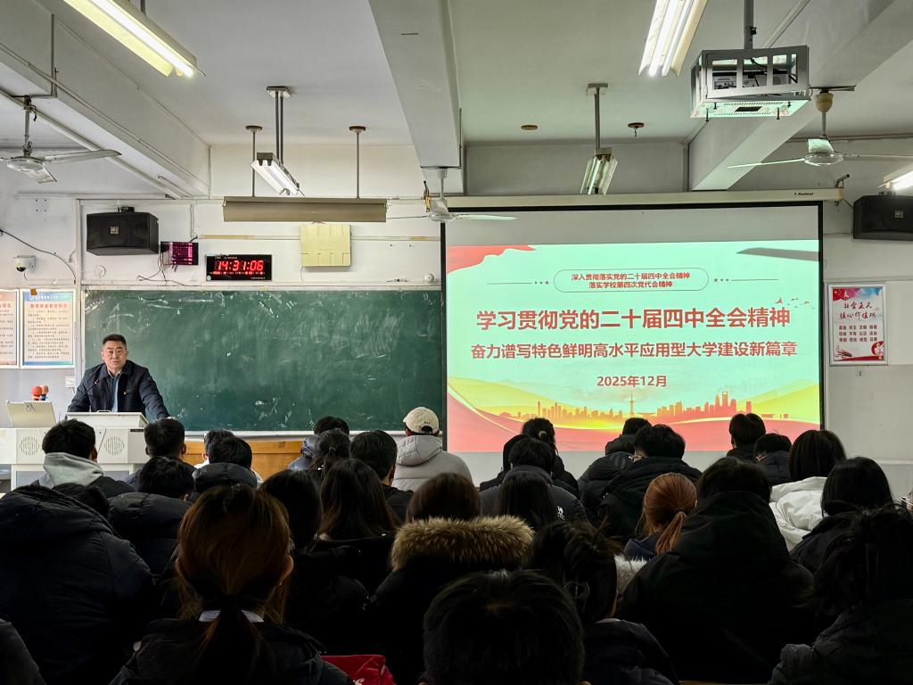 学院党委将两项重要精神的学习宣传贯彻作为关键政治任务抓实抓细,学院党委书记率先开展专题宣讲与精神传达。宣讲中,围绕党的二十届四中全会召开的时代背景、重大意义以及核心精神内涵进行全面阐释,明确全会于2025年10月20日至23日在北京举行,是在我国即将进入基本实现社会主义现代化夯实基础、全面发力的关键时期召开的一次十分重要的会议,全会审议通过的《中共中央关于制定国民经济和社会发展第十五个五年规划的建议》为未来发展提供了根本遵循,同时系统解读了全会提出的“十五五”时期经济社会发展指导思想、重大原则、主要目标和12项重点战略部署。在传达学校第四次党代会精神时,党委书记指出,学校第四次党代会于2025年11月28日至30日胜利召开,是学校在关键发展阶段召开的重要会议,报告全面总结了第三次党代会以来的发展成就,深入分析了面临的机遇挑战,明确了下一步发展的指导思想、工作目标和主要任务,对学校全面加强党的建设提出了明确要求,为学校未来发展擘画了清晰蓝图。结合学院实际,党委书记提出学习贯彻的基本要求,强调要将党的二十届四中全会精神宣讲和学校第四次党代会精神有机融合,把国家战略部署与学校发展目标落到学院具体工作中,为全院师生准确理解把握精神内涵筑牢理论基础。